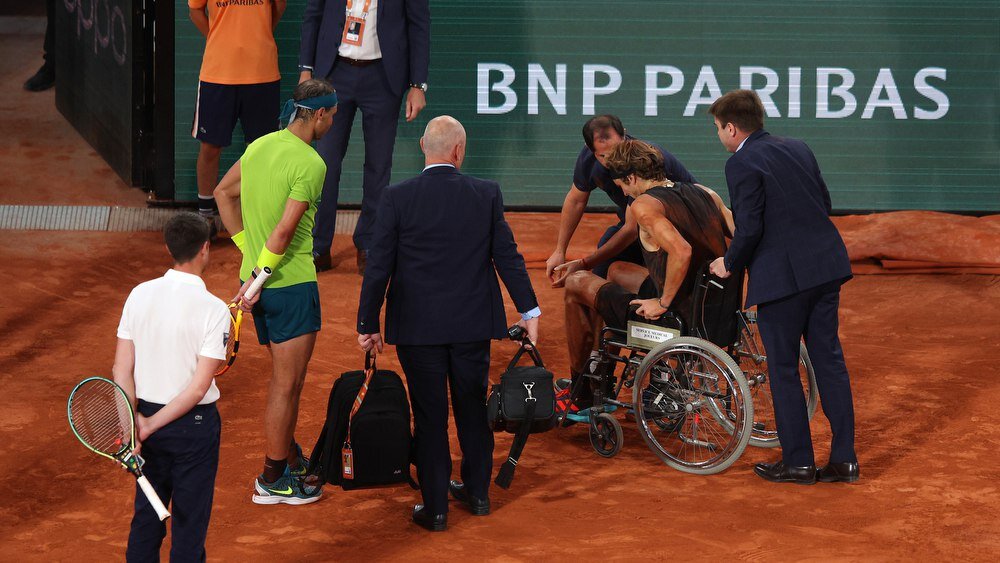 Страшная травма на «Ролан Гаррос-2022». Зверев покидал корт на коляске, а Надаль был в шоке