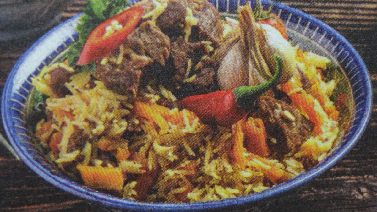 Марина Ганиева предлагая нам рецепт этого плова говорит если у вас нет казана, то с пловом у вас будет пролёт. Ну я же не Марина, поэтому её рецепт я вам писану. Самое главное что нам нужно: Вода - 4 ст. Помидоры -2 шт. Зёрна граната - 1 горсть. Баранина - 400 г. Баранье рёбрышко - 1 шт. Рис узбекский - 2,5 стакана. Лук репчатый -3-4 шт. Растительное масло - 200 мл. Морковь - 3 шт. Чеснок - 1 головка. Острый перец чили -1 шт. Перец молотый ( смесь), соль - по вкусу. Зира - 1ч.л. Способ приготовления: В казан влить масло, опустить очищенное от мяса баранье рёбрышко, прокалить его и вынуть. Мясо промыть, нарезать на куски и обжарить в казане в раскалённом масле. Очищенный луки вымытую очищенную морковь измельчить, добавить к мясу. Помидоры обдать кипятком, снять с них шкурку и нарезать мякоть. Отправить в казан. Обжарить всё с мясом. Залить воду, посолить, поперчить и довести до кипения. Острый перец вымыть. Рис промыть , положить в казан слоем. Головку чеснока промыть и