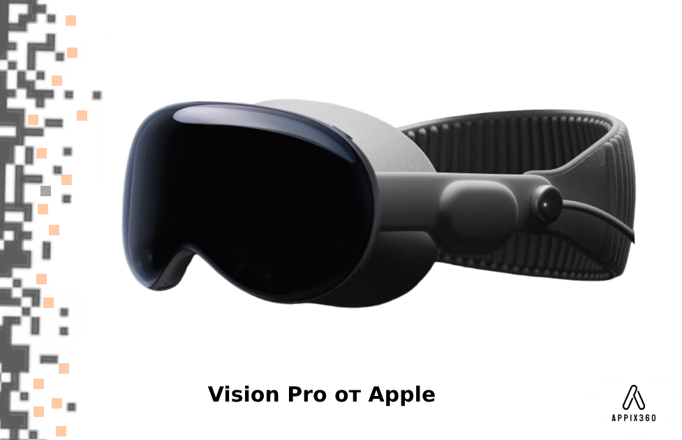 Компания Apple представила Vision Pro — гарнитуру смешанной реальности, которая сочетает функции дополненной реальности (Augmented reality, AR) и виртуальной реальности (Virtual reality, VR). Слухи об этом устройстве ходили долгие годы. Новинка в первую очередь позиционируется в качестве AR-гарнитуры, однако она позволяет полностью переключаться в режим трёхмерной виртуальной реальности с помощью специального аналогового колеса, похожего на колёсико часов Apple Watch. Всё управление и перемещение между приложениями осуществляется с помощью взгляда, жестов, а также голосовых команд. В составе гарнитуры используются 5 сенсоров, 12 камер и дисплей. Новинка оснащена активной системой охлаждения и встроенными наушниками Audio Pods с поддержкой пространственного звука. Оголовье гарнитуры выполнено из тканевого материала и использует модульную конструкцию, которая подойдёт под разные типы и размеры голов пользователей. На самой гарнитуре находятся всего несколько кнопок управления — для фотог