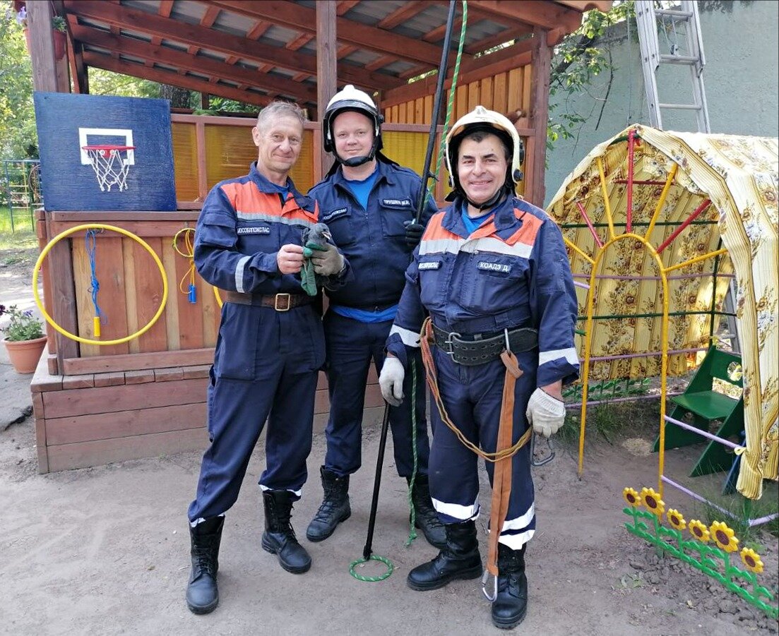 «Прибыв на место вызова, работники противопожарно-спасательной службы развернули трехколенную лестницу, и один из спасателей, поднявшись к кроне дерева, освободил пернатого пленника от веревок. Спустившись вниз, работник дежурной смены убедился, что в помощи ветеринарного специалиста птенец не нуждается и отдал галчонка представителю детского сада», – заключил Валерий Осипов.