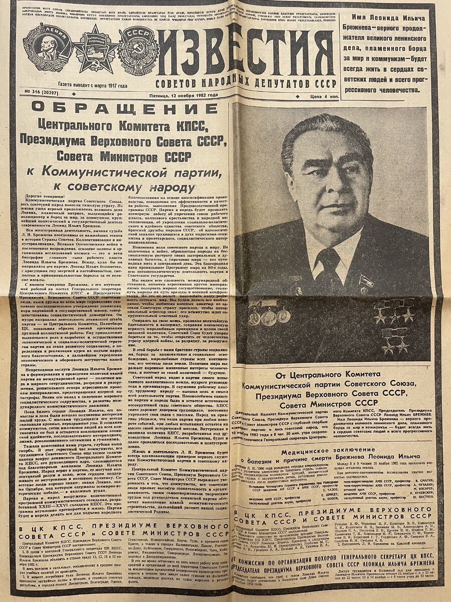 Известия 12 ноября 1982 года. Смерть Л.И. Брежнева