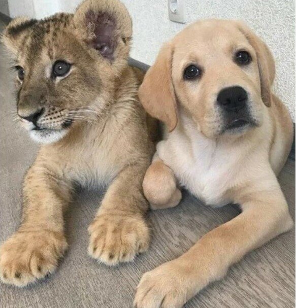 При чём наших любимых четвероногих совершенно не интересуют вид и происхождение другого существа. Животные не умеют говорить, поэтому мы можем только догадываться об их мыслях и чувствах. Однако в жизни есть множество примеров того, когда животные разного происхождения могут дружить между собой, проявлять заботу друг о друге и даже спасать друг друга от несчастий. Читайте несколько удивительных историй про дружбу животных в нашей подборке. Собака Эльза стала мамой львёнку и тигрятам Лабрадор по кличке Эльза попала в иркутский зоопарк ещё щенком. Там она нашла себе замечательного друга. Им оказался осиротевший трёхлапый львёнок Фортис (лапу малыш потерял при рождении). Сначала они вели себя как простые малыши: играли, резв