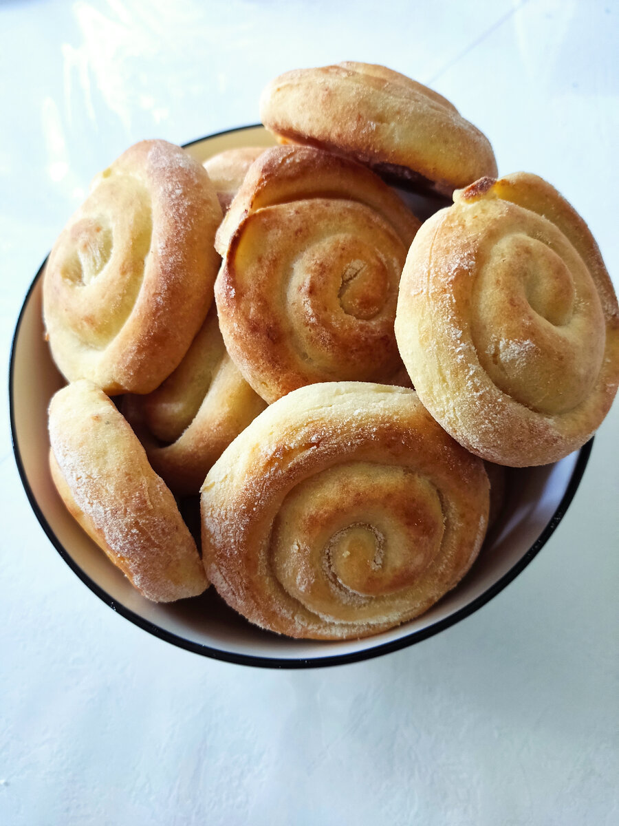 Здравствуйте😊 Творог я часто использую в выпечке или при приготовлении десертов. В чистом виде никто из домашних не ест, а продукт полезен для организма. Нам понадобится: - 2 яйца - 200 г творога - 3 ст. л. молока - 3 ст. л. растительного масла - 100 г. сахара - 200 г муки - разрыхлитель для теста Яйца, творог, молоко, масло, сахар взбиваем блендером. Мне не нравится, когда чувствуются крупинки творога. Муку смешиваем с разрыхлителем и добавляем к полученной основе. Должно получиться мягкое тесто, не прилипающее к рукам. Если тесто получилось жидковато, добавьте необходимое количество муки. Разделяем тесто на равные части и формируем жгутики. Сворачиваем и придаём форму "улитки". Ставим выпекать разогретую духовку на 20 минут при температуре 180°. Приятного аппетита! Больше рецептов в подборке канала