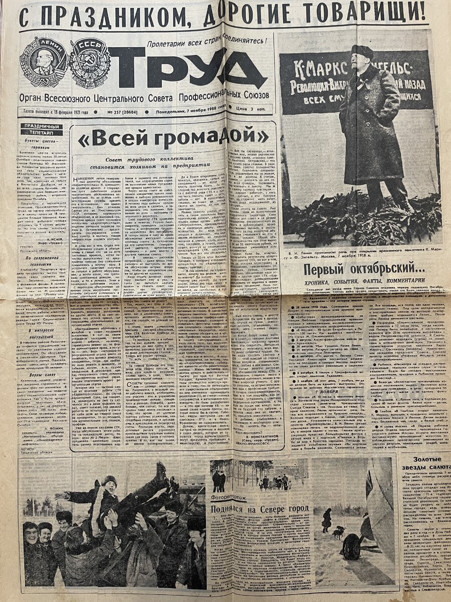 Труд 7 ноября 1988 года. С Праздником!