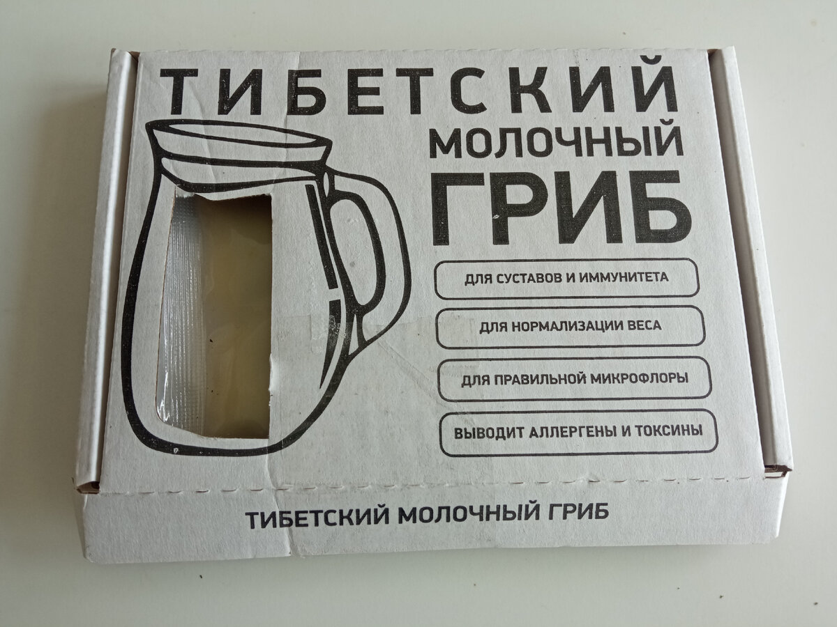 Когда я была ребенком, у нас был кефирный гриб, и каждый день из покупного молока сквашивалась большая кружка кефира. Этот кефирчик уважала не только я, но и мой кот, и в один прекрасный день он этот гриб бессовестно сожрал. С тех пор я нигде его не могла найти. Но недавно мне попалось объявление на авито – оказывается, люди делят разросшийся гриб и продают за копейки (100-200 руб.) или вообще даром. Но поблизости таких предложений не оказалось, и я купила гриб на озоне. Вот он: Сразу оговорюсь: если есть возможность, лучше берите гриб у знакомых. Чуть позже объясню, почему. Молочный, кефирный, тибетский гриб – это все одно и то же. Только на самом деле это даже не гриб, а группа бактерий и микроорганизмов, сосуществующих вместе. Всего этих организмов около двух десятков, среди них – молочнокислые стрептококки и палочки, уксуснокислые бактерии и дрожжи. Питаются молоком, в результате их работы получается нежная прелесть с живыми бактериями. Выглядит грибок как маленький белый кусоче