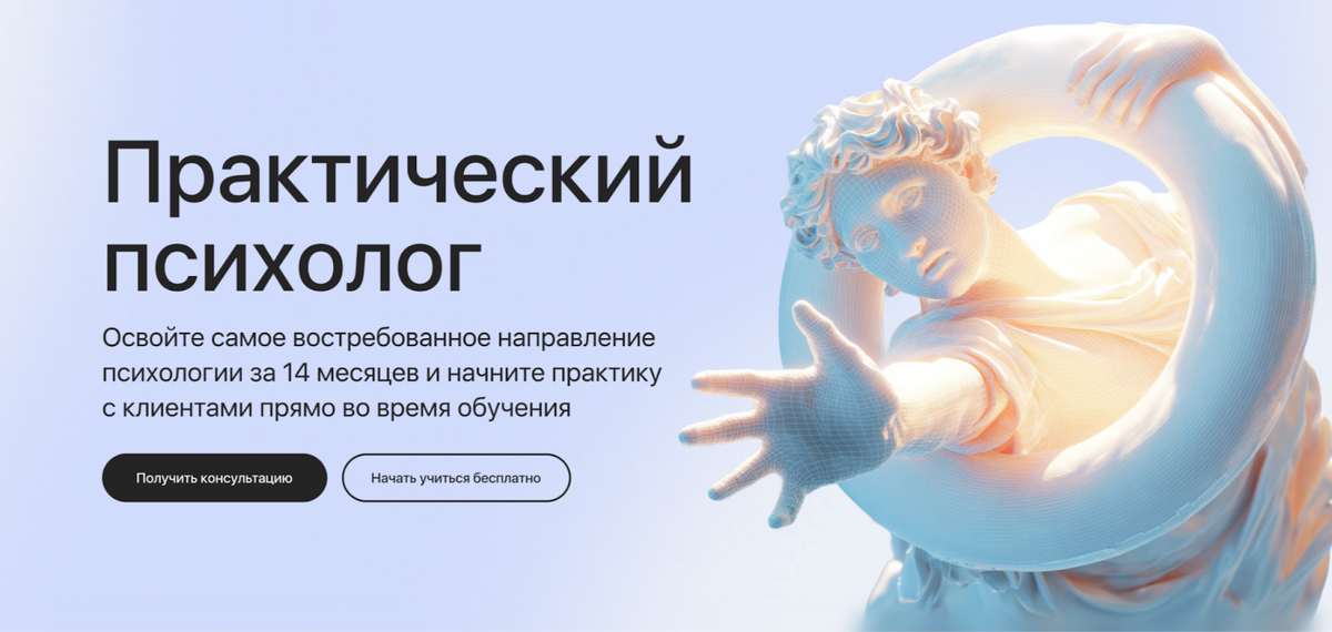 Курс «Практический психолог» — это понятный путь в профессию с нуля: 14 месяцев обучения, реальные клиенты во время программы и возможность начать зарабатывать уже в процессе.