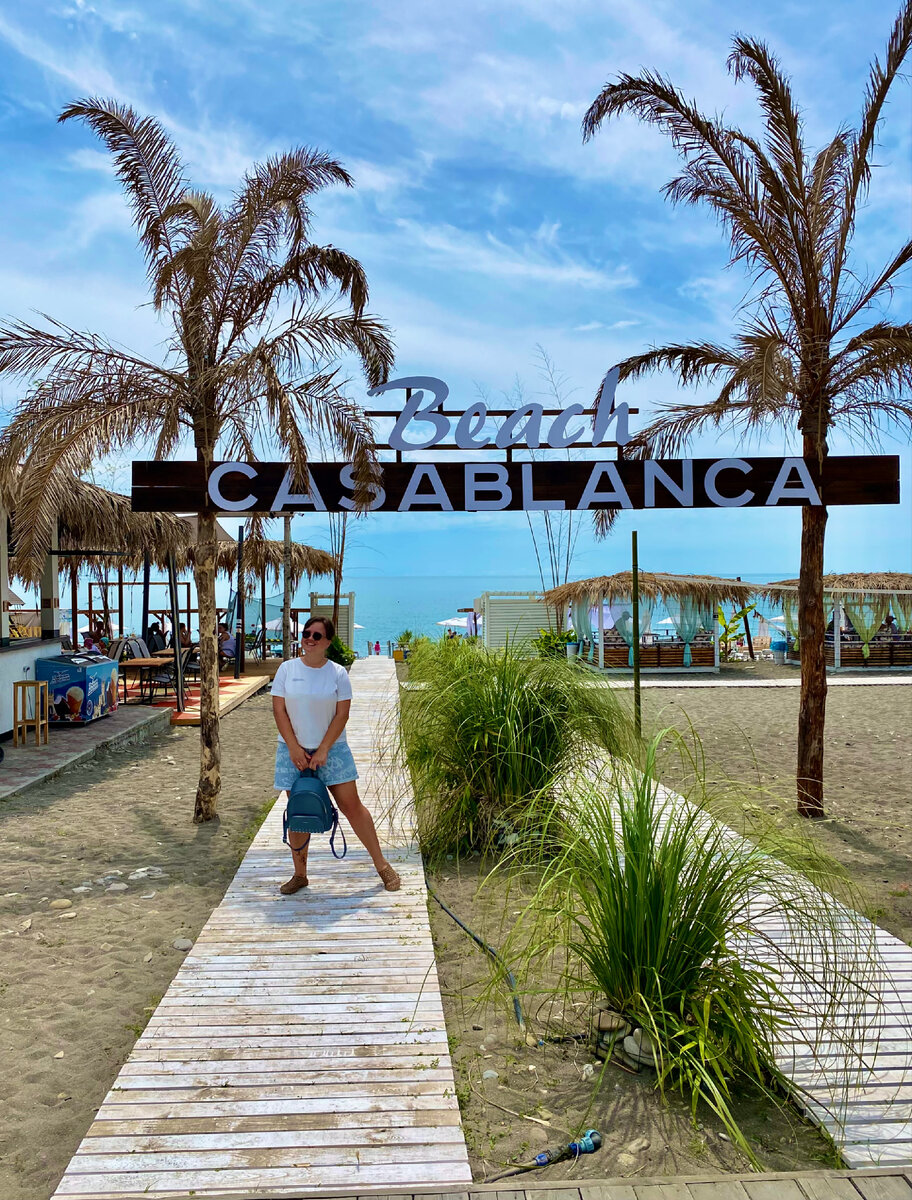 Пляж Касабланка резко отличается от всех остальных в Лазаревском: множество бунгало с яркими шторами, новенькие деревянные настилы, современные пляжные кафе вкупе с тропической растительностью выглядят чудесно. А еще здесь ну очень много места и большой выбор самых разных шезлонгов.
