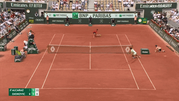 Феномен. Карлос Алькарас славится умением забивать совершенно невероятные удары из тяжелых положений. И в полуфинале «Ролан Гаррос» против Новака Джоковича он снова его продемонстрировал. Джокович дернул его вперед укороченным, потом отправил обратно на заднюю линию. И получил вот такое. В этом ударе невероятно все. И то, как Алькарас с разворота наотмашь пробил и нашел боковую линию. И то, как он двигался. Просто догнать этот мяч – уже было подвигом. Новаку оставалось только поаплодировать. Правда, в итоге эти геройства, возможно, и привели к судорогам, которые сломали эпический полуфинал. Джокович победил – 6:4, 5:7, 6:1, 6:1. Коррида – вот откуда пошла любимая кричалка фанатов на «Ролан Гаррос». Мелодии почти 100 лет Подписывайтесь на наш телеграм о теннисе Вспомните предыдущие розыгрыши «Ролан Гаррос». Тест для опытных болельщиков