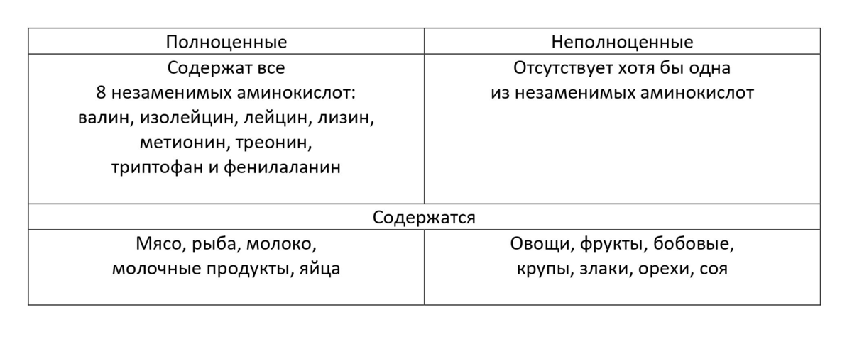 Важно учитывать при этом качество белка – оно выше у полноценных белков. Например, необходимые для спортсменов аминокислоты лейцин, изолейцин и валин содержатся только в продуктах животного происхождения, они входят в спортивную добавку ВАСАА (от англ. «branched-chain amino acids»). Эти аминокислоты являются ключевым материалом для построения новых мышечных волокон, помогают повысить выносливость, предотвращают разрушение и ускоряют восстановление мышечных белков.