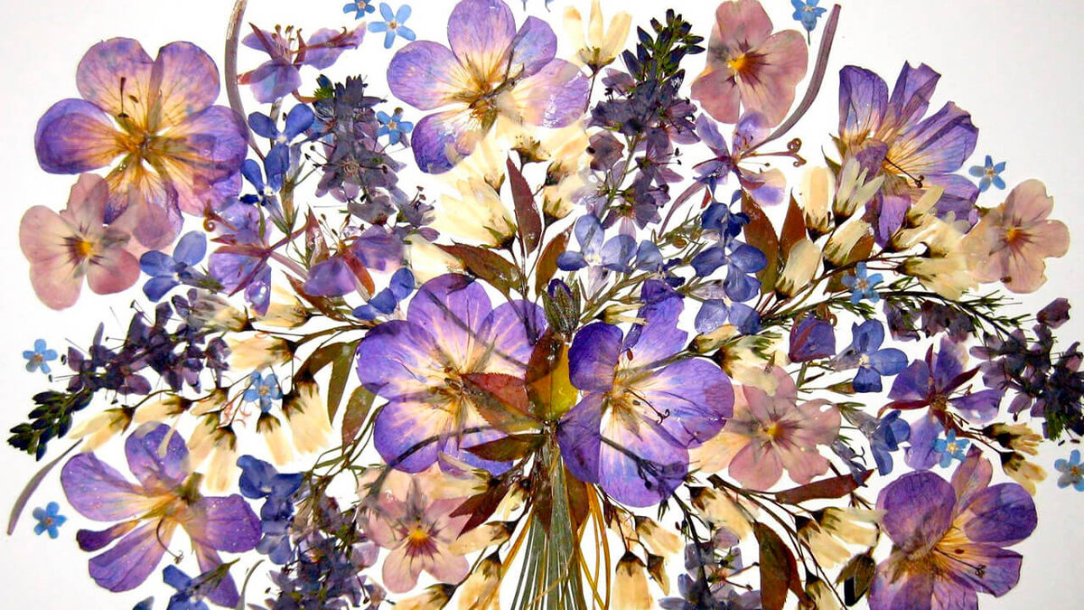 Самое главное в искусстве создания картины из сухих цветов — это правильно заготовить сырье. Цветы и листья должны сохранять свой цвет, фактуру и форму, поэтому их высушивание лучше проводить под прессом. Можно сушить растения между страницами старой книги или аккуратно прогладить горячим утюгом.