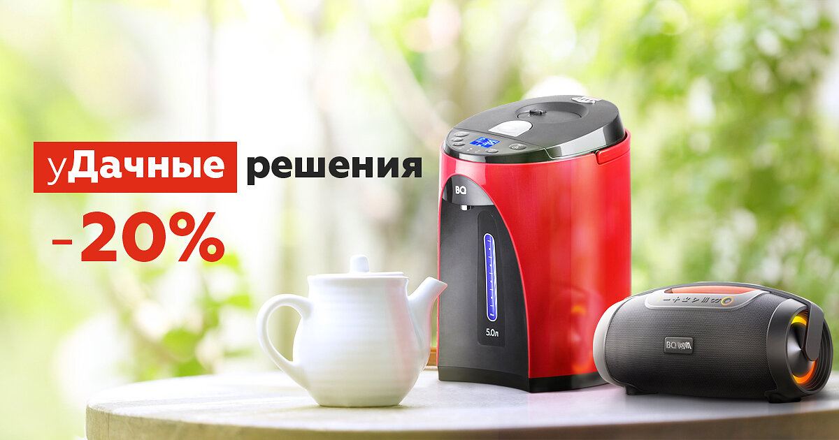 🔥 Встречаем дачный сезон со скидками до 20% 🔥 Лето – время новый открытий и уДачных покупок! Бренд BQ желает хорошего урожая и дарит скидку на обновление дачного «инвентаря». Успейте приобрести бытовую технику и телевизоры со скидками по промокоду – ДАЧА в нашем интернет-магазине: https://shop.bq.ru/lyeto/! • чайники – 20%