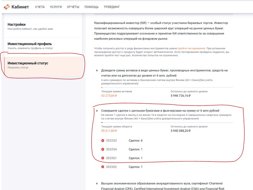 Если у вас нет 6 млн руб на банковских или брокерских счетах и у вас нет специального образования или опыта работы , опять же, в спецорганизациях, то вам остается один путь для получения КИ – копить обороты с финансовыми инструментами в течение 1 года не пропуская ни одного месяца.