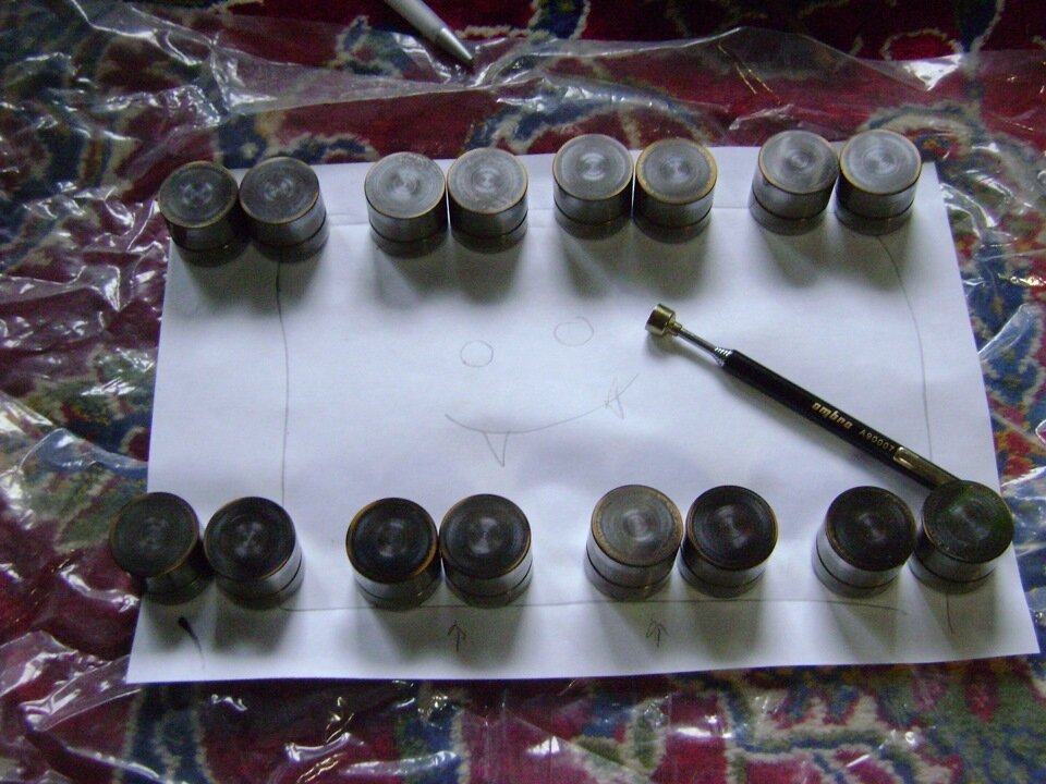Комплекты — пружины тарелки тоже нужно размещать так, чтобы было понятно, откуда они. Каждый клапан притерт к своему месту .
