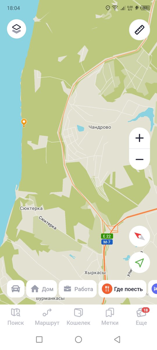 37 день путешествия 8 июня День великого плана добраться до кемпинга в Чандрово! До него оставалось 60 км и мы были настроены доехать обязательно. В 8 утра подъём, собрались в 10:20. Ветер был очень сильный и просто выгонял нас со стоянки. Ближайший деревенский магазин в Ярославке, это км 13 от нашей стоянки. Ехали всё время в горку и ветер совсем не помощник, какой-то заколдованный холм, но красивый. В сельпо Оля купила булки с маком, молока и мы по-прежнему без вечерней тушенки. Мы сразу перекусили немного этой сдобой с молоком и поехали в сторону совмещения с трассой М7. Когда выехали на М7 на счётчике было 22 км и сразу долгий бесконечный тягун. Тягун этот длился 9 км до самых Москакасы, за это время мы обе уже устали на него забираться и свернули перекусить у какого-то питомника в 14 часов на полчаса. Ура! В Москакасах наступило чудо! Первое - это широченная техничка. Второе - мы начали спускать набранную высоту и 6 км мы ехали вниз, а ветер нам