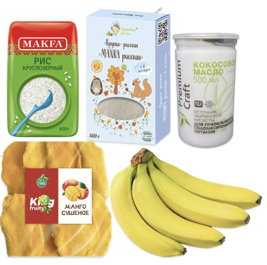 Не знаю как ваши дети, но мой ребенок не признавал никакие каши, кроме овсяной. Поэтому всячески приходилось изощряться и придумывать новые рецепты приготовления знакомых еще с детства каш. Один из таких рецептов - рисовая каша с бананом и манго. У меня была рисовая манка, но думаю, если приготовить и обычный рис по ниже указанной схеме, тоже получится очень вкусно. Ингредиенты на 2 порции: Рис отварить в воде как обычно до готовности (около 20 мин, у меня рисовая манка - около 5-10 минут). Манго предварительно замочить в кипятке минут на 5. Потом 1 банан и манго пропустить в блендере до состояния пюре. В готовую еще не остывшую кашу добавляем кокосовое масло, пюре манго и банана. Я еще добавила семена чиа. Всё, быстрый, полезный и очень вкусный завтрак готов!