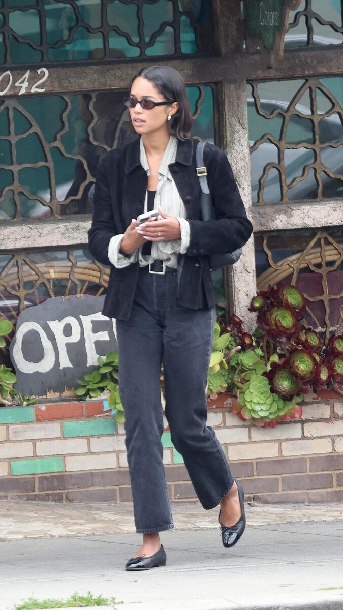 Пока погода позволяет создавать многослойные образы — этим следует пользоваться, так как они всегда отличаются особым шармом и стилем. Это подтвердила нам и актриса Лора Хэрриер. Она отправилась на прогулку в черном свободном топе, поверх которого надела рубашку в винтажном стиле и замшевый жакет. К ним звезда подобрала лаконичные прямые джинсы на высокой посадке и кожаные балетки с едва заметными бантиками. Завершением повседневного лука стали узкие очки, сумка и украшения. Читайте также на нашем сайте: Подписывайтесь на нас в Телеграме, чтобы быть в курсе последних новостей!