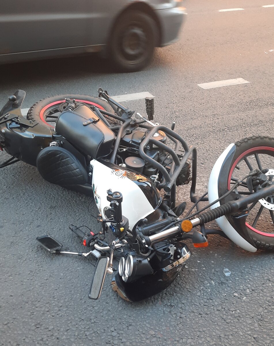 Первые минуты был шок. Вообще нельзя сразу вставать, т.к объективно не возможно "диагностировать" состояние своё после падения. Тут я совершил конечно же ошибку, т.к адреналин и попытка собраться в купе с опасением, что "сейчас ещё и прилетит от едущих следом машин" подняли меня и отковылял в сторону обочины.