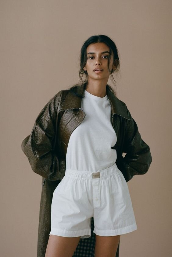 Пару лет назад на улицах стали появляться девушки…в мужском нижнем белье, как могло показаться на первый взгляд. На самом деле это еще одно ответвление бельевого стиля, и если раньше мы таскали из гардероба бойфренда футболки и рубашки, то теперь можно заползти и на другие полочки. Это конечно шутки, потому что большинство брендов разного ценового сегмента уже выпустили специальные модели для девушек. Как носить? Один из классных вариантов – шорты + пиджак, таким образом мы немного нивелируем расслабленность низа. Если хочется быть на максимальном релаксе дополняем образ худи или свитером оверсайз. Для жарких дней выбираем оверсайз футболки, легкие майки и летящие рубашки, кстати многие бренды стали делать пижамные комплекты. Из обуви варианты разнообразны: кеды, кроссовки, броги, обязательно с белыми носочками, а также модные в этом году балетки. А если быть модной хочется, а щеголять в боксерах бойфренда не очень, то вот еще один классный прием: надеваем белье под брюки/джинсы/ шорты