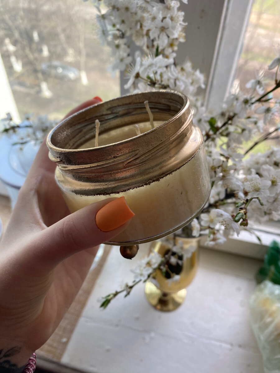 Следующими на очереди освобожденных из страшной комнаты оказались свечи. Такие желтоватые вертикальные свечи, не совсем идеальной формы, некоторые с уже обожженным фитилем. Такие раньше были у всех, на случай отключения электричества. И еще я прихватила обычную стеклянную банку из-под икры и какой-то металлический новогодний шар, подарочный вариант чая на Новый год. Тут много фантазии не потребовалась. Из свечей делаем свечи. Только в более удобном и современном формате. Банка стала отличными подсвечниками. Ее я покрасила из баллончика и приклеила к ней ножки из бусин. Бусины дома нашлись только такие, из какого-то детского набора, поэтому их я тоже предварительно покрасила. От шара я использовала только одну половинку и проделала с ним то же самое, что и с банкой. Для второй половинки у меня тоже нашлось применение, но об этом в другой раз. Итак, дальше самое, на мой взгляд, интересное. Делала ли я раньше свечи? Нет. Почитала ли я об этом какие-то статьи? Нет! Зачем? Сами все соо