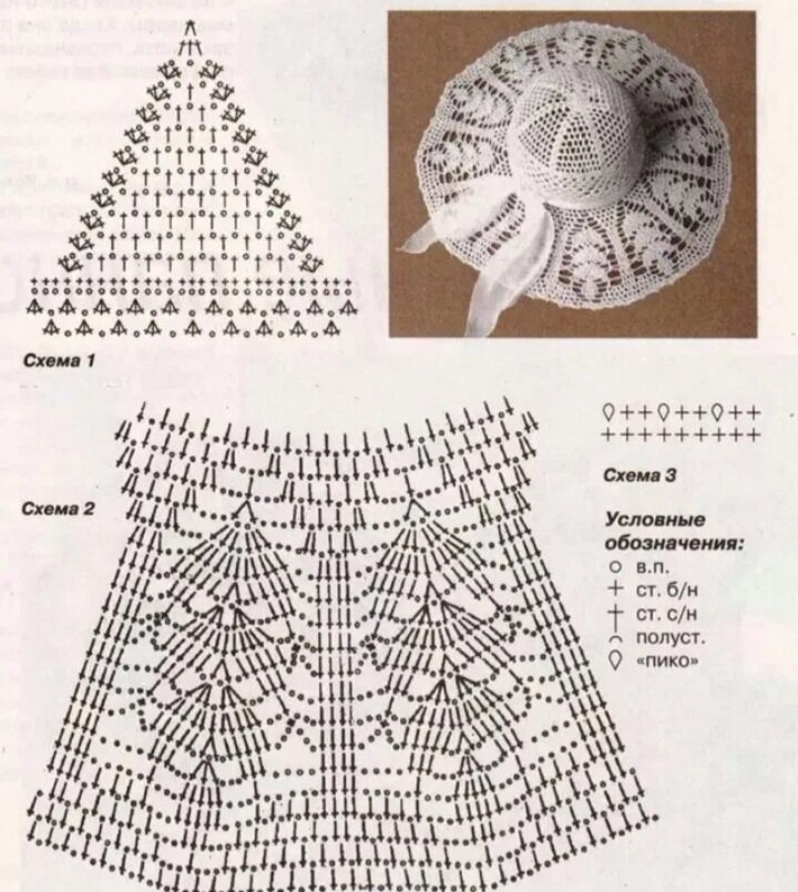 Лето и без головного убора никак. У нас в мае нынче уже было настоящее лето.Жара тридцать градусов и больше. И как без шляпки? Никак! Поэтому принялась за вязание шляпок. Себе любимой , родственникам на подарки , одну шляпку продала. Конечно ниточки сразу прикупила. У меня как в природе ,круговорот. Покупаю ниточки что то вяжу , дарю , немного продаю и снова покупаю ниточки. Шляпки вяжу по своему сочиняю сама , донышко на основе салфеток , что то довязываю придумываю. Стараюсь чтобы модель шляпки была простой красивой и легко можнл было при желании изменить размер шляпки. На канале есть подробные видео по вязанию. А сегодня подборка для тех кто вяжет по схемам и моя оценка. Красивая шляпка , особенно поля. Но я бы изменила вязание донышка шляпки. Почему? Да потому что плохо защищает от солнышка. Связано сеточкой. Донышко нужно вязать более плотным узором , чтоб не пекло голову. Следующая модель шляпки. На мой взгляд. Донышко шляпки хорошее я вязала почти такое же , с листиками. А