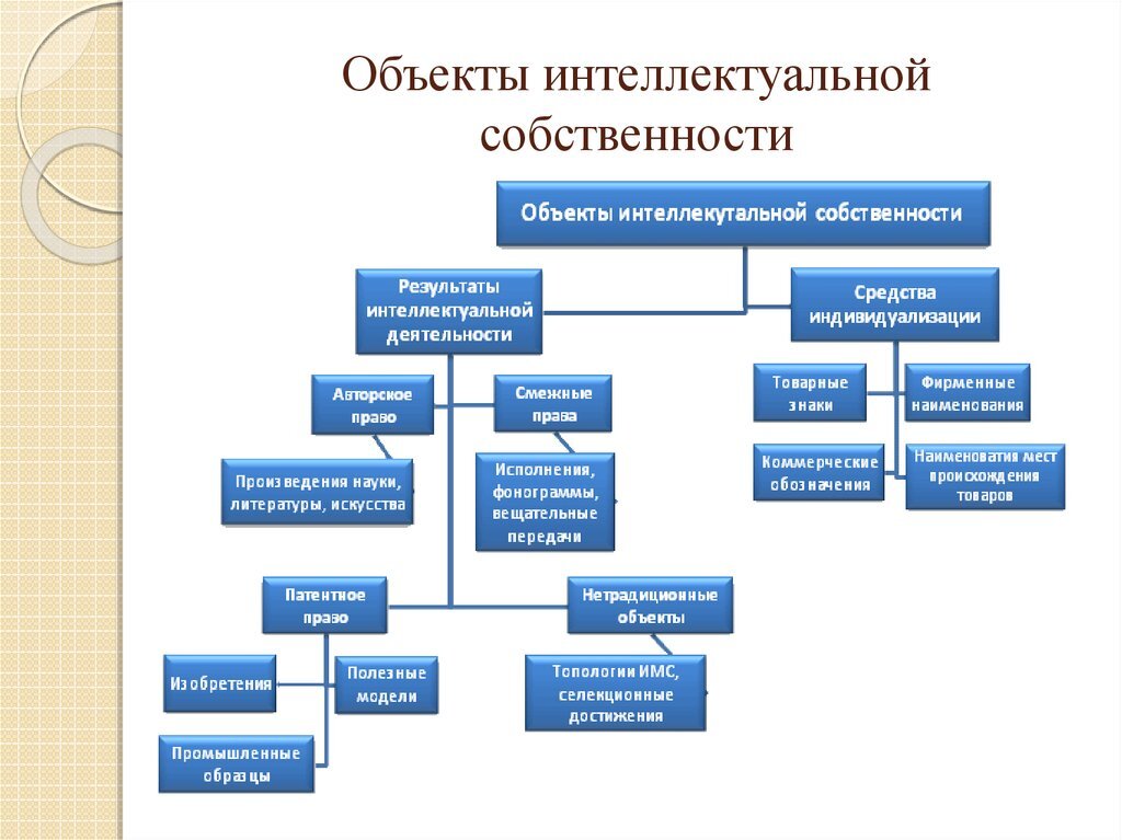 С каждым годом сфера цифровых технологий развивается, разрабатываются все новые и более усовершенствованые методы хранения, обработки, воспроизведения и распространения информации. Кроме того, основной источник информации сейчас, это world wide web (www.), то есть интернет. В настоящее время практически не один бизнес не обходится без своего сайта, посредством которого, клиенты находят необходимые им товары, а бизнес таким образом получет клиентов. Помимо развития интернет технологий, активными шагами идет развитие електронных микропроцессорных устройств. Все это есть продукты интелектуальной деятельности человека. Если в отношении материальных обектов, таких как недвижимость или иные предметы материального мира нам более мене понятно как осуществляется защита собственности, то в отношении не материальных обектов тут все не так ясно. Начну с того какие бывают объекты интелектуальной собственности. Положения ст. 1225 ГК РФ содердит 16 объектов интелектуальной собственности и прира