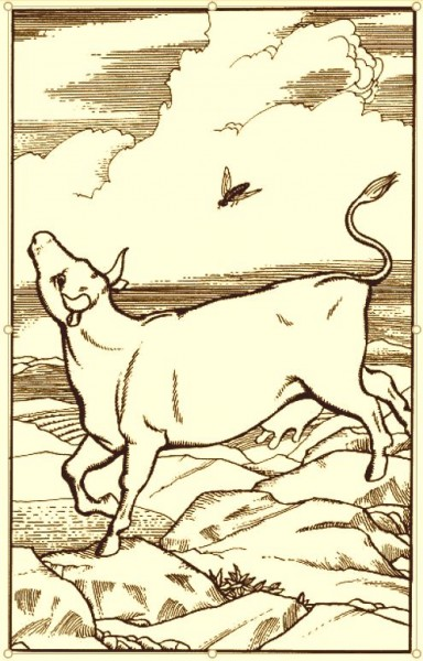 Древнегреческий миф гласит: однажды богиня Гера разгневалась на смертную женщину Ио и пожелала сурово наказать её. На несчастную Ио, обращённую в белоснежную корову, она напустила огромного овода, который жалил её и гнал по свету, не давая ни минуты покоя. «Своим ужасным жалом, — пересказывал этот миф историк Кун, — овод гнал из страны в страну обезумевшую от мучений несчастную страдалицу Ио. Овод летел за ней, поминутно вонзая в тело её своё жало; жало овода жгло Ио, как раскалённое железо». Греческие жрецы даже исполняли особый танец в честь Ио, изображая, как их мучает свирепый овод.
