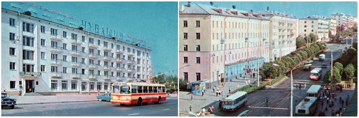 Наш читатель Виктор Павлов поделился интересными воспоминаниями из истории транспорта города Чебоксары. Вспоминается посещение города Чебоксары в 1972 году. Тогда в нем троллейбусы разных маршрутов были окрашены в разные цвета, а маршруты имели собственные названия. Пассажирам издали было видно, троллейбус какого маршрута едет. Один маршрут был окрашен в бело-зеленый цвет, а другой - в желто-красный. На открытках "Чебоксары" 1973 года видны эти троллейбусы разных маршрутов (красно-кремовый одного маршрута слева, бело-зеленый другого маршрута, к сожалению, его видно плохо на фото в нижнем углу справа). Теоретически такая система могла быть удобной для городов с небольшой маршрутной сетью. Пассажир, особенно у кого зрение не такое четкое, уже издали мог бы понять идет ли транспортное средство нужного ему маршрута или нет. С другой стороны это потребует закрепление конкретного транспортного средства на конкретном маршруте, что тоже может быть не удобно для транспортного предприятия. В