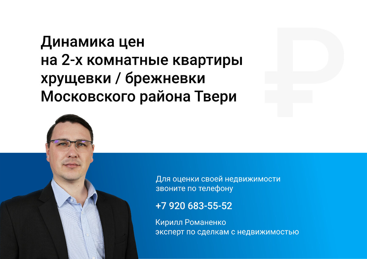 хрущевки / брежневки Московского района Твери Средняя цена предложения 1 м2 = 69 000 р. (+0,9%) 44 м2 = 3 050 000 р. - Средняя цена продажи 1 м2 = 65 500 р. (+3,8%) 44 м2 = 2 900 000 р. - #анализрынка #ценаквартиры Цены на недвижимость зависят от множества различных факторов, вплоть до психологического настроя продавца и покупателя. Поэтому до начала продажи можно лишь определить «ценовой коридор», в котором с большой вероятностью находится стоимость вашей недвижимости. И для более точного определения этого «коридора» позвоните мне +7-920-683-55-52