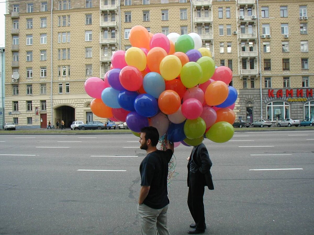 Второй тип – это бизнесмены. Тогда было много очень броских и дорогих выставок во всяких центрах типа Крокуса. Бизнесмены заказывали либо кучи шаров с логотипами, либо в виде одного огромного. Мы надували гелием огромный шар под 3 метра, и он всю выставку болтался и привлекал внимание.