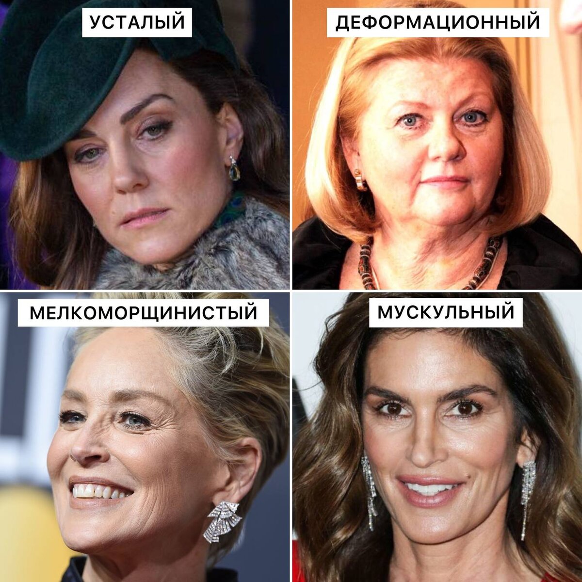 КАКОЙ У ВАС ТИП СТАРЕНИЯ? Существует мнение, что СТАРЕНИЕ ЛИЦА разделяется на ТИПЫ🤔 1️⃣УСТАЛЫЙ ТИП Лицо выглядит так, словно женщина не выспалась. Кожа тусклая, безжизненная, не хватает тонуса. Уходит объем щек, они выглядят впалыми. Углы губ ползут вниз. 2️⃣МЕЛКОМОРЩИНИСТЫЙ ТИП Кожа сухая и тонкая, подкожно-жировой клетчатки мало, поэтому первые морщинки появляются очень рано, иногда даже в 20-25 лет. Лицо напоминает печеное яблочко. 3️⃣ДЕФОРМАЦИОННЫЙ ТИП Хорошо развита подкожно-жировая клетчатка, ткани лица тяжелые, и с возрастом они неминуемо начинают «плыть» вниз. Отсюда все проблемы — второй подбородок, выраженные носогубные складки, нечеткий овал лица, брыли. Часто бывают отёки. 4️⃣МУСКУЛЬНЫЙ ТИП Для европейцев он нетипичен — так стареют представители монголоидной расы. Кожа плотная и упругая, мышцы в тонусе, поэтому серьезных проблем с овалом нет. С возрастом лишь истончается подкожно-жировая клетчатка, и черты лица становятся грубыми и резкими. Выделяют ещё и СМЕШАННЫЙ Т