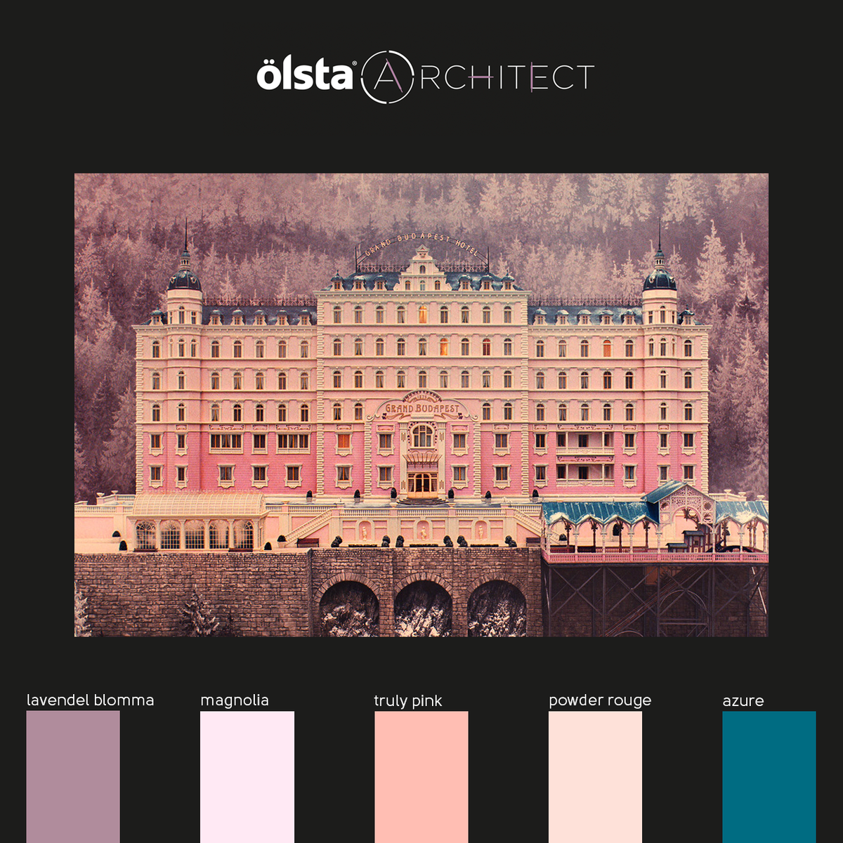 «Отель Гранд-Будапешт» — апофеоз любви к цвету и работы с цветом в карьере режиссера. Здесь есть все цвета: яркие, нежные и теплые в начале, розовые, красные, с вкраплениями глубокого сине-зеленого, венское з