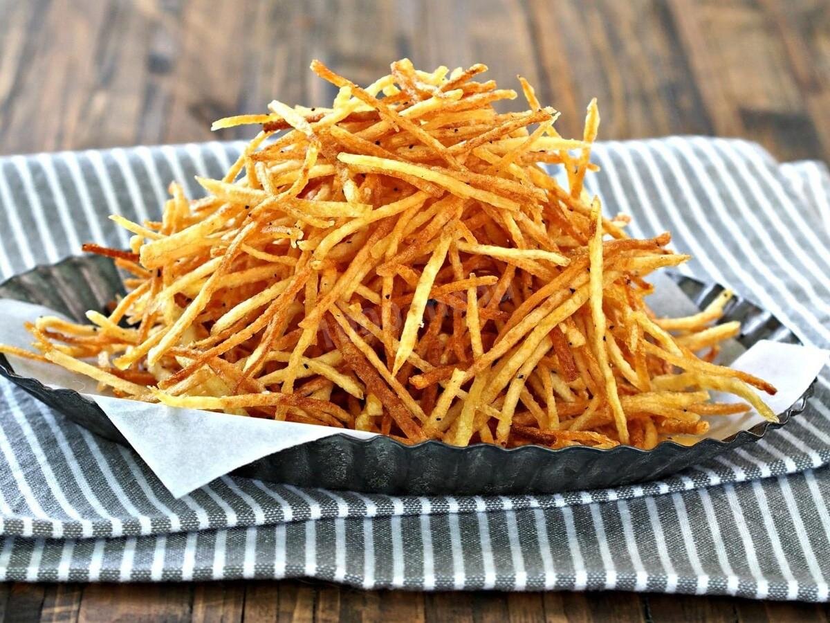 Муж попросил закуску к пиву для матча, приготовила ему картофель-пай по этому рецепту. Съел всё за несколько минут! Картошка-пай - это хрустящая закуска. Подавать такую картошку можно просто с соусом или можно добавить её в салат.😋 ПОШАГОВЫЙ РЕЦЕПТ ПРИГОТОВЛЕНИЯ 1) Очистите картофель. Натрите его на терке для моркови по-корейски. 2) Выложите натертый картофель в дуршлаг и промойте под краном проточной водой. Дайте стечь лишней жидкости. Затем хорошо посолите картофель. 3) Обжарьте его, выкладывая по чуть-чуть в разогретое растительное масло. 4) Подавайте картофель пай с вашим любимым соусом или просто так. Приятного аппетита!