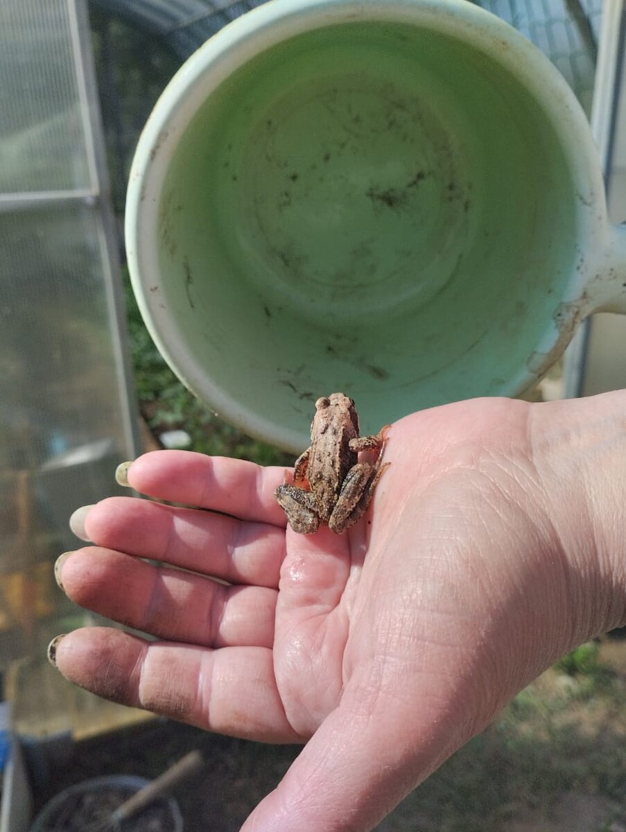 Многие ошибочно думают, что полоть скушно. Грязные изранетые руки, крапива и одуваны. На самом деле (голосом Дроздова, обожаю его) мир природы прекрасен и удивителен в своем эволюционном разнообразии. Пока ловили лягушонка, я научилась прыгать подражая его диким первобытным повадкам. Пы. Сы. Лягуху отпустили, тока любовались.