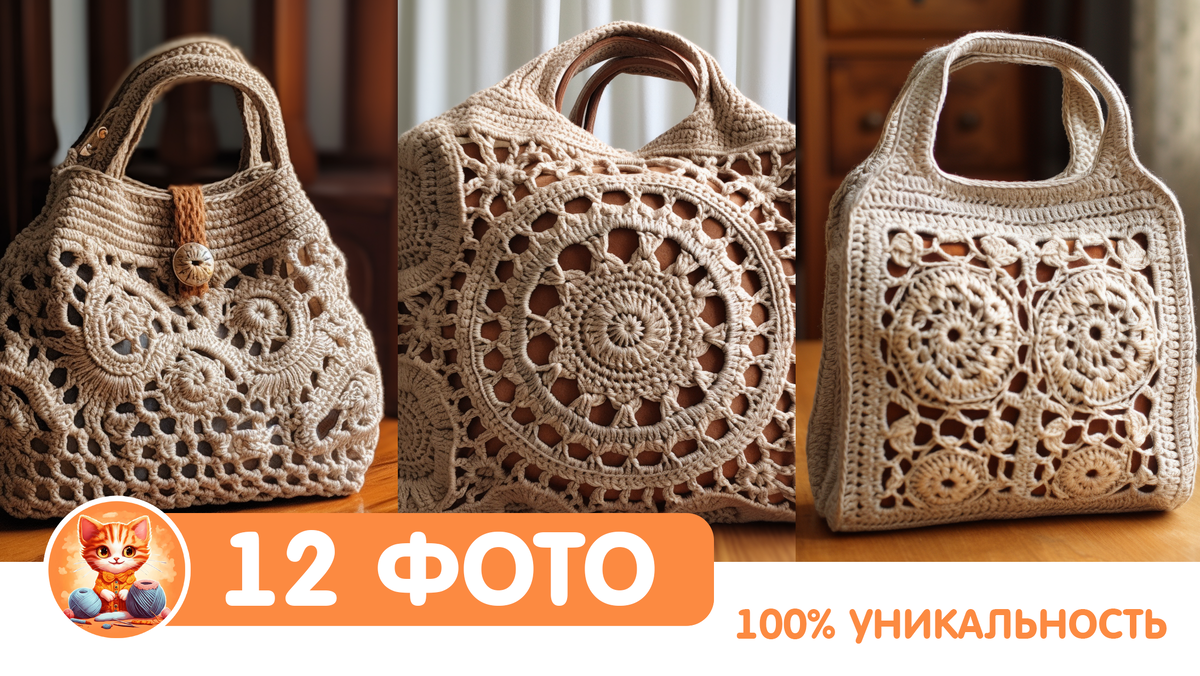 У каждой женщины есть любимая сумка - удобная, практичная. Но потёртая от времени. Очень не хочется прощаться с такими сумками. А что если обновить её с помощью ниток и крючка? В этой подборке я собрала 12 идей от нейросети, как можно обвязать старую сумку и подарить ей новую жизнь. Отлично смотрится сочетание кожи и льняной пряжи. Если подборка оказалась для вас полезной - ставьте лайк или отблагодарите комментарием. Для меня это верный сигнал, что мои статьи полезны рукодельницам. Удачных вам переделок! мешок с ручками На этом канале я публикую новые идеи вязаных игрушек, одежды, решений для интерьера. Всё сгенерировано в самой профессиональной нейросети Midjourney. Доступ к ней платный, но для вас все подборки совершенно бесплатны. Подписывайтесь на канал и получайте только самое качественное! Образцы существуют только на рисунке, потому что полностью придуманы нейросетью. Быть может вы станете первыми, кто воплотит прототипы в жизнь и сделает своими руками. Ещё на канале: