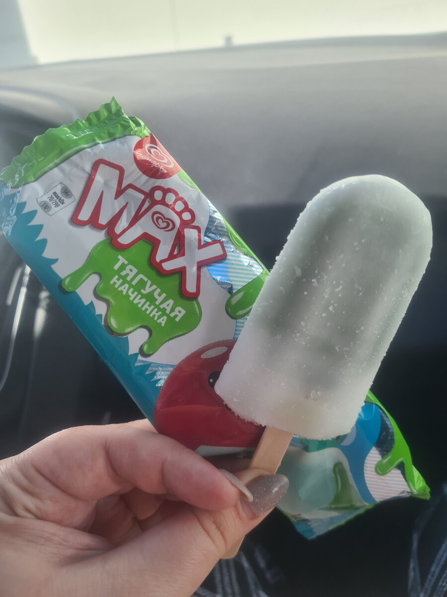 У нас сегодня выдался довольно тёплый день и ходя по магазинам захотелось мне мороженого, вот в магазине Да взяла на пробу. А оказалось, что ещё сегодня и день мороженого 🎉 Ничего такое мороженое, по вкусу вкусно, но не сказать что я в него влюбилась)) Стоит у нас в магазине оно 36 рублей 90 копеек. Снаружи фруктовый лёд, внутри что-то зелёное, сладкое. Как и написано на упаковке начинка тягучая. А как вы проводите сегодняшний день? Кушали мороженое?