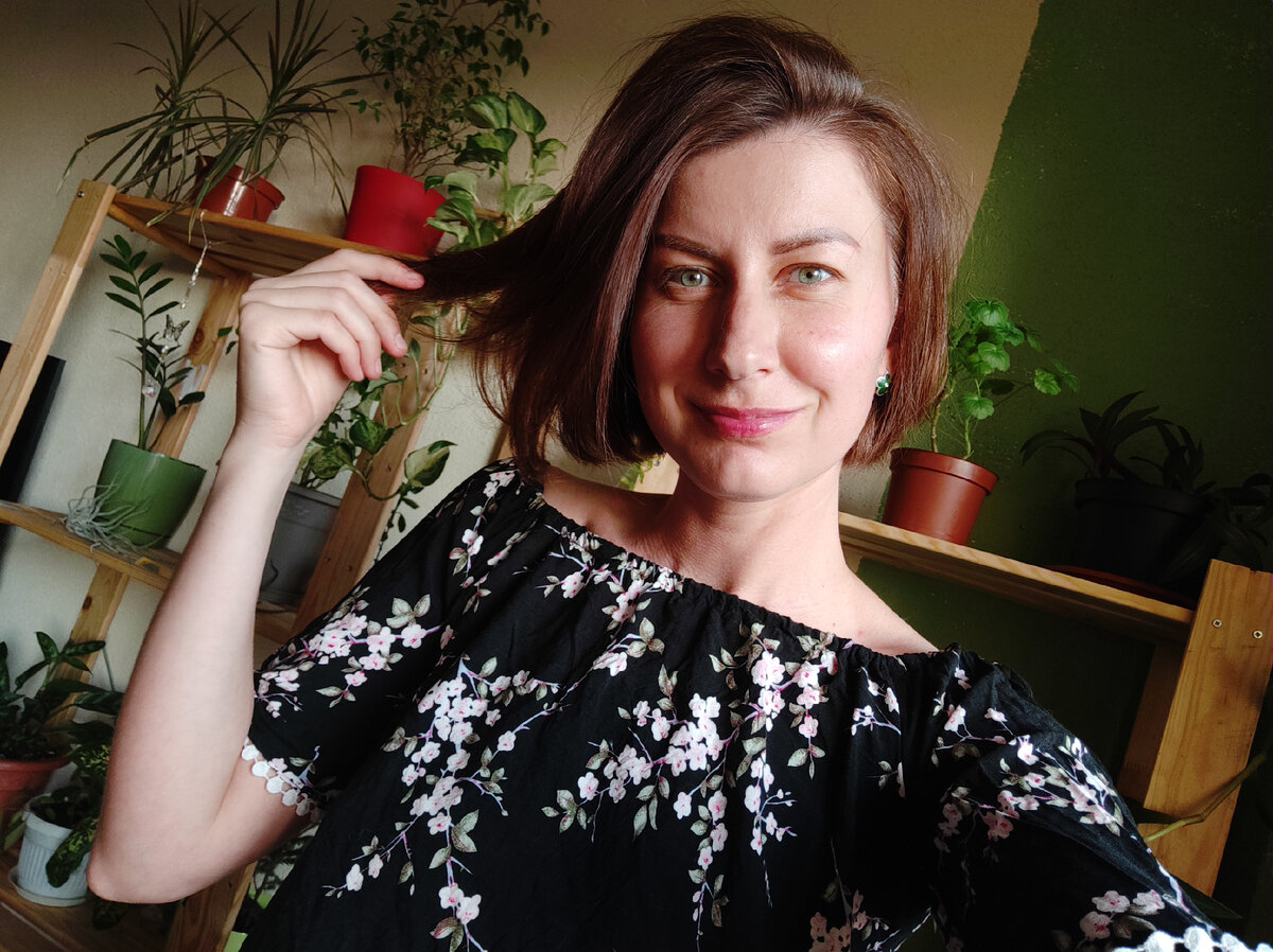 Приветствую всех! Буду продолжать рассказывать про вещи из Израиля. Напомню, что у меня было путешествие и на днях я вернулась в Петербург. Привезла много обновок и теперь делюсь с вами. В Израиле люди оставляют вещи прямо на улице. Аккуратно складывают в пакет, всё поглажено. Могут оставить у мусорных баков, на скамейке или просто где то в специально отведённом месте. Вторая жизнь вещам - там это популярно. Так вот, много чего уже вам показала из найденного там, сегодня покажу топ и лосины. А вот и я. Первое фото будет селфи на фоне моих цветиков. Топ короткий, цветы на чёрном фоне. На первый взгляд он выглядит простым. Да, это так и есть. Обычная невзрачная тряпочка. Но если его надеть, то смотрится круто. Особенно на моём похудевшем теле. Сфотографировала название бренда и состав. Бирки на месте. На иврите и на английском. Для тёплого места Топ хорош. Свободный, удобный. Правда пуп открыт. Но если посадка у брюк высокая, то отлично. Я надела его с лосинами, которые тоже там