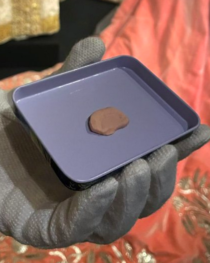 Однажды Эрмитаж открыл широкой публике доступ к коллекции русского костюма и исторических нарядов в русском стиле. Гордостью музейного собрания считаются роскошные одежды участников знаменитого костюмированного бала 1903 года в Зимнем дворце: его темой стало время правления царя Алексея Михайловича, поэтому одежда, обувь и аксессуары были стилизованы под XVII век. Один из нарядов принадлежал великой княгине Ксении Александровне, родной сестре императора Николая II. Ее фотография в этом платье с бала 1903 года дошла до наших дней. Готовя платье к выставке, музейные специалисты совершили удивительную находку. Как рассказала художник-реставратор высшей категории Галина Федорова, одним из этапов работы является осмотр карманов, вкладок, подгибов и других мест, где может скапливаться пыль. Один из рукавов платья оказался зашит, но явно «на скорую руку». Реставратор аккуратно удалила нити, и у нее на ладони оказался небольшой предмет розового цвета неправильной формы. «И почему-то – наверное
