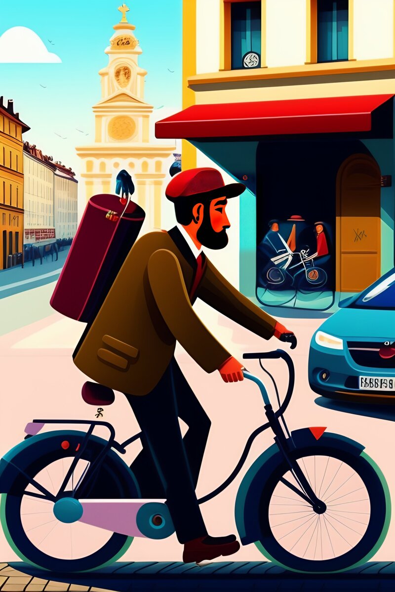 Жил-был веселый и оптимистичный велосипедист. Его любимой вещью был старинный велосипед с большими колесами и огромным рулем. Этот велосипед был его настоящей страстью, и он не представлял своей жизни без ежедневных поездок на нем. Однажды, велосипедист решил прокатиться в своей любимой шляпе, которая давно уже не использовалась. Ему было очень приятно чувствовать на себе легкий ветер и наблюдать за окружающим миром, находясь на своем велосипеде в шляпе. Велосипедист не обращал внимания на прохожих, которые с улыбкой смотрели на него, одетого в шляпу. Он продолжал кататься на своем велосипеде с чувством свободы и беззаботности. Однако во время одной из поездок велосипедист увидел незнакомого человека, который шел по дороге с его велосипедом. Велосипедист понял, что это был вор, но были задержать его было не возможно. В ворах была украдена много дорогих и ценных вещей. Велосипедист решил помочь в поимке вора. Он быстро догнал вора и благодаря своему велосипеду смог задержать его до приб