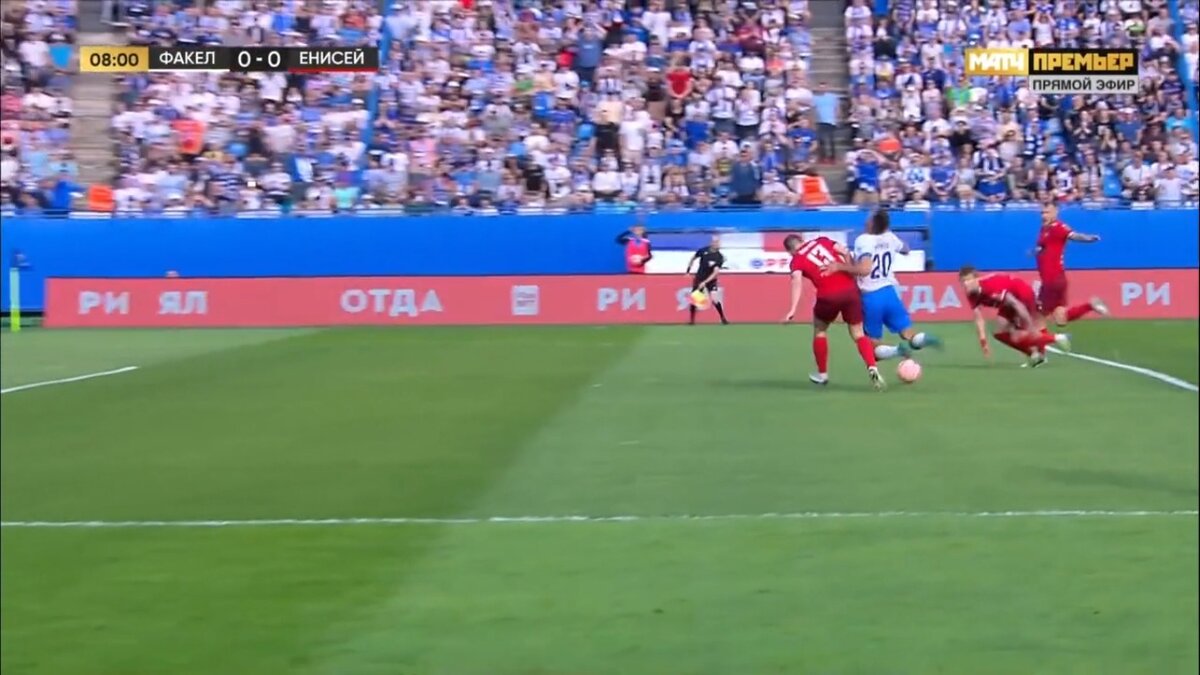 Вчера 10 июня в Воронеже состоялась ответная игра в стыковых матчах между местным Факелом и Енисеем (Красноярск). После первого матча в Красноярске было минимальное преимущество Факела в один мяч. Это создавало небольшую надежду, что Енисей сможет навязать борьбу воронежской команде. Но Факел сразу же решил себя обезопасить и пошёл вперёд. Пенальти назначен в ворота Енисея на 8 минуте! Прошла проникающая передача Романа Акбашева в штрафную гостей, где Николай Марков, выбивая мяч, двинул своего однофамильца Евгения Маркова по ноге! Пенальти мощно и точно в противоположный от вратаря угол пробил Роман Акбашев. Енисей попытался отыграться и развивал свои атаки, но опаснее всего был левый защитник Валерий Кичин, который нанёс два удара в створ ворот Факела в первом тайме. Голов больше в первом тайме зрители не увидели. На перерыв команды ушли при счёте 1:0. Во втором тайме сначала игра пошла на встречных курсах, но позже красноярцы перешли в длительное позиционное нападение, а футболисты Ф