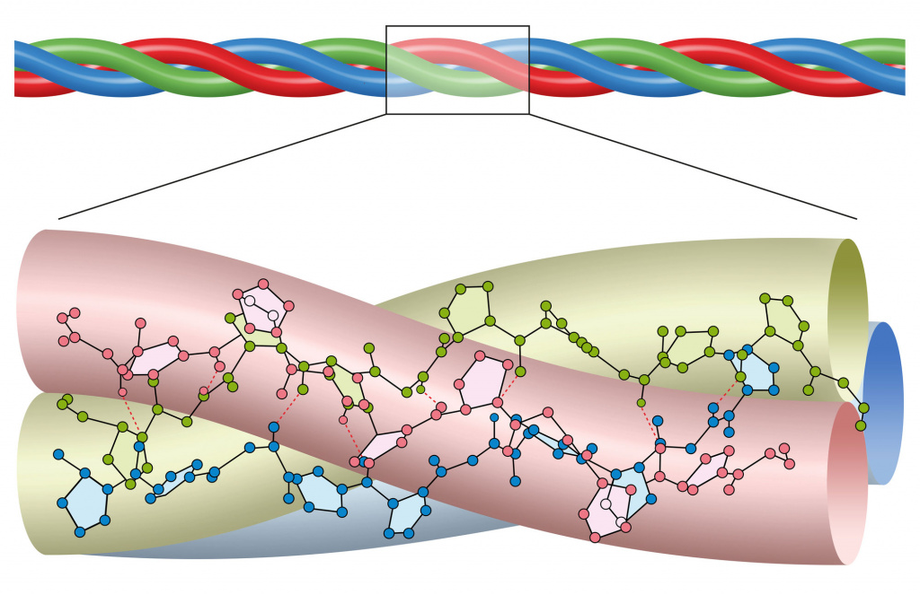 Что такое коллаген, в чем польза коллагена. Коллаген присутствует в телах всех зверей, птиц, рептилий и рыб. Для человека он тоже представляет собой жизненно важное вещество. Без этого полипептида тело функционировать не может. Что такое коллаген, зачем он нужен, и какая от него польза? Коллаген: что это такое Сегодня известно 28 типов коллагена, из них 5 имеют особую важность: С возрастом разрушение коллагена ускоряется, а его выработка снижается. Этот процесс становится особенно заметным у людей старше 60 лет. Поэтому кожа покрывается морщинами, слабеют и атрофируются мышцы, кости теряют прочность, а связки эластичность. Польза коллагена. Полипептиды, которые синтезируются организмом на основе полученной пищи, называются эндогенными; поступающие извне — экзогенными. Некоторые их виды являются резорбируемыми. Это означает, что молекулы могут всасываться, расщепляться и преобразовываться телом в собственный коллаген. Это позволяет формировать нужные коллагеновые структуры для косм