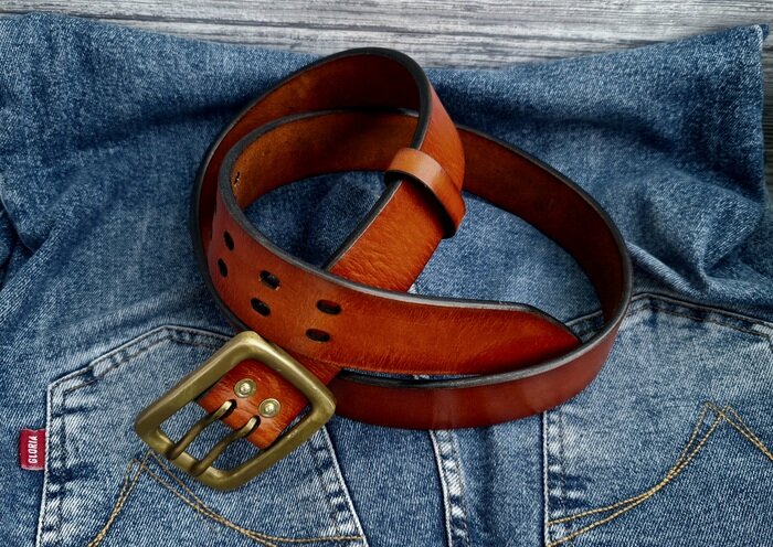 Ремень ручной работы. Бразильская натуральноя кожа растительного дубления ременной выделки. Ремень абсолютно новый, ни разу не одевался, изготовлен мной для продажи.
