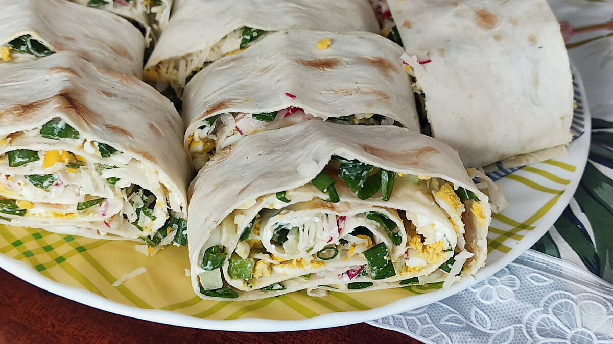 Дачный вариант быстрого перекуса. Рулет из лаваша с начинкой