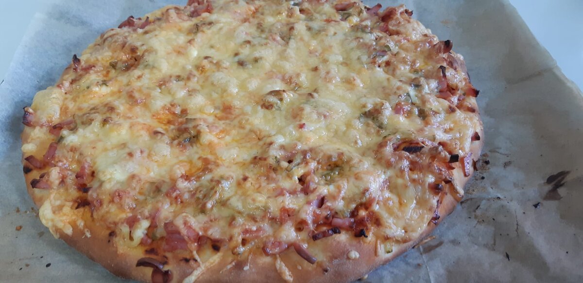 Опара: Смешиваем молоко, дрожжи, сахар, 3 столовые ложки муки и оставляем на 20 мин. Тесто: добавляем яйцо и оставшуюся муку и замешиваем тесто После того как тесто замешано - добавляем масло и месим еще раз - далее убираем на расстойку на 60 мин. Также можно замесить вечером и оставить на ночь в холодильнике. Пока подходит тесто готовим соус: обжариваем томат-пасту с чесноком и любимыми специями на Ваш вкус. Раскатываем тесто толщиной примерно 0,5 сантиметра, смазываем поверхность соусом. Поверх выкладываем любую начинку, у меня это были сосиски, солёный огурец тонкая сетка майонеза для сочности и побольше Вашего любимого сыра (у меня голландский) Отправляем в разогретую до 230 градусов духовку на 12-15 минут. (до готовности). Приятного аппетита! Пишите Ваши вопросы в комментариях - с удовольствием на них отвечу.