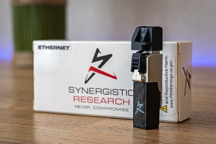 “Затычка” для LAN от Synergistic Research Вот что пишет производитель о своем новом диковинном устройстве: “UEF Performance Enhancers от Synergistic Research - это новый фильтр UEF, который снижает уровень шума вашей системы, поэтому вы слышите больше музыки с большей четкостью и меньшим шумом для более приятных высоких частот. Мы начинаем с нового компаунда UEF, впервые разработанного совместно с нашим флагманским кабелем SRX. Когда вы включите один UEF Performance Enhancer в свою систему, вы обнаружите, что слушаете дольше и, возможно, на меньшей громкости, поскольку ваша система кажется лучше. Когда вы вставите второй усилитель производительности UEF, вы, вероятно, услышите увеличение того, что вы испытали, когда в вашей системе был только один фильтр. Улучшения включают в себя более глубокие и плотные басы, расширенную звуковую сцену и детализацию, которая поднимается над теперь более низким уровнем шума. Но будь осторожен; Усилители производительности UEF являются мощными инстру