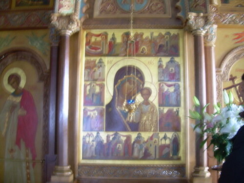 Икона Казанской Божией Матери в Оптине, в Казанском храме с клеммой (справа внизу), посвящённой Явлению Матери Божией Митрополиту Гор Ливанских Илии.
