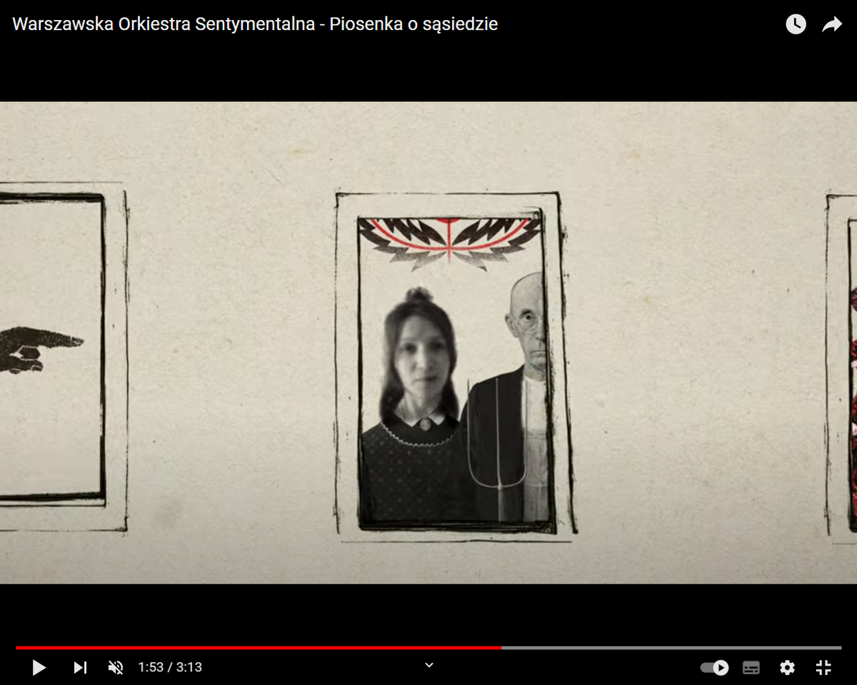 "Песенка о соседе" - одна из немногих советских песен в репертуаре Варшавского Сентиментального Оркестра Габриэли Мощицкой. (Другие - "Давай сегодня встретимся" Б.Мокроусова, и еще для московских гастролей Габа разучила "Пусть бегут неуклюже" по-русски). Песня "Наш сосед" Б.Потемкина из репертуара Эдиты Пьехи в Польше известна по версии Ирены Сантор, гранд-дамы польской эстрады. Оркестр исполняет ее давно, была запись с польского ТВ, была - в их фильме-концерте "Сентиментальный Файф", еще "телефонная" запись с гастролей в Москве... Оркестр продолжает экспериментировать - теперь это мультфильм, напоминающий авангардные работы Яна Леницы. См.также