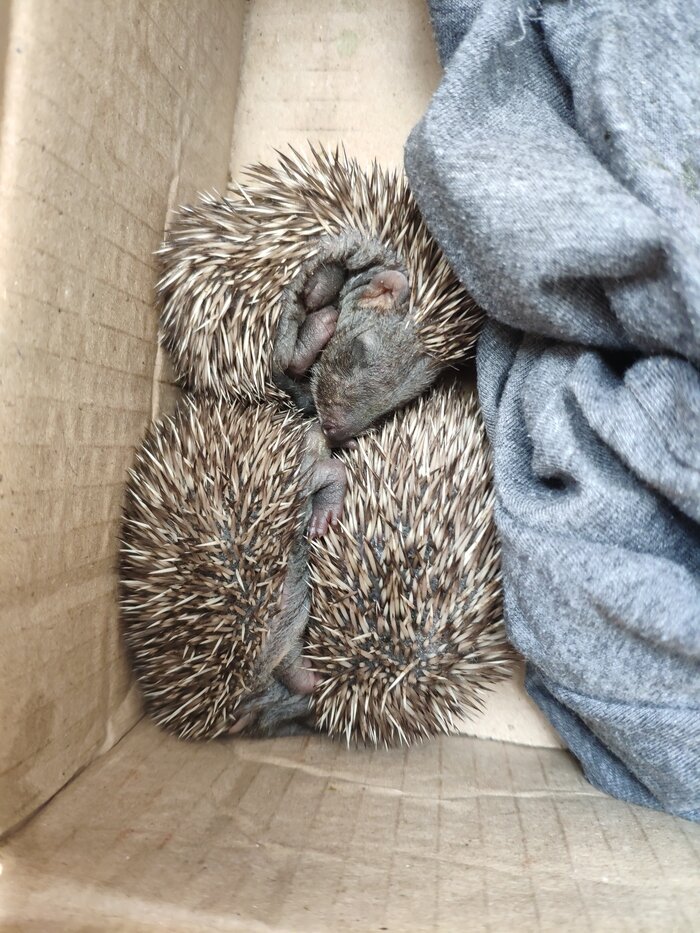 Приехали на выходные к родителям в деревню. Захожу домой, а у них коробочка стоит дома и кто то там шевелиться. Посмотрел внутрь, а там ежата. Отец грустный сидит. Я спросил, что случилось, откуда ежата? Оказывается, у родителей начался сенокос. Отец в огороде косил траву на мотоблоке и косилкой наехал на ежа. Животное размолотило полностью. Под ним находилось небольшое углубление и там лежали ежата. С начало их было 4 штуки. Но один был немного ранен. Отец перенес их в коробку домой. Обработал раненого и поставил их в теплое место. Кормит их со шприца молоком. Сначало говорит сопротивлялись и сворачивались в клубок, сейчас едят с удовольствием причмокивая на раслабоне. Тот который был с ранками, к сожалению не выжил, был очень слабый. Остальные бодрые. Посмотрим как дальше будет. Отец подкармливает их домашним молоком каждые три часа. До сих пор переживает, что так получилось. Пост автора kinderMzf. Узнать, что думают пикабушники.