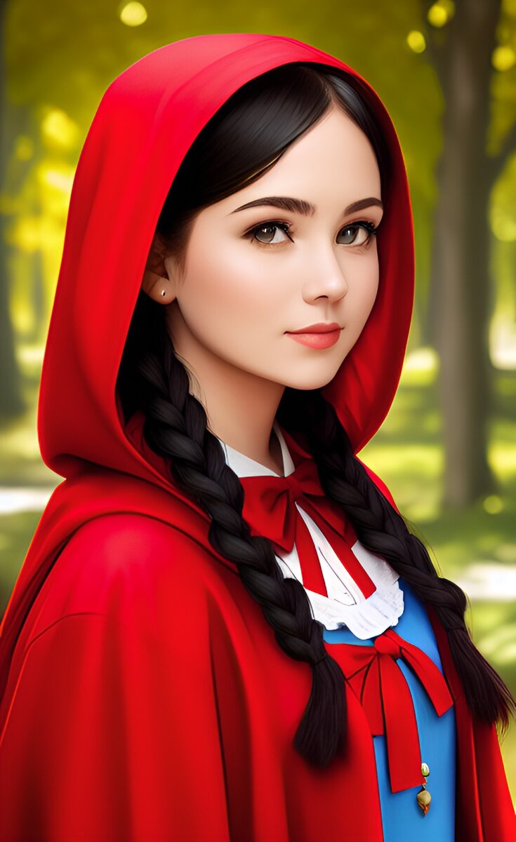 Девочка, девушка, бабушка — благодаря нейросети Красная Шапочка не только повзрослела, но и поседела. Мелкая Шапка. Вместо пирожков бабушка внучке в школу сэндвичей наготовила. Стимпанковская леди. С такой девушкой волку на узкой тропинке лучше не встречаться. Лесная прогулка. Поездка в Нью-Йорк. Девочка-гот. Сказки не стареют, а сказочные героини соскакивают с книжных страниц, становятся бабушками и уже сами пекут пирожки для внучат и волчат. А на Хэллоуин шьют костюм волка. Ну или это Большой Злой Волк пытается выдать себя за Красную Шапочку.