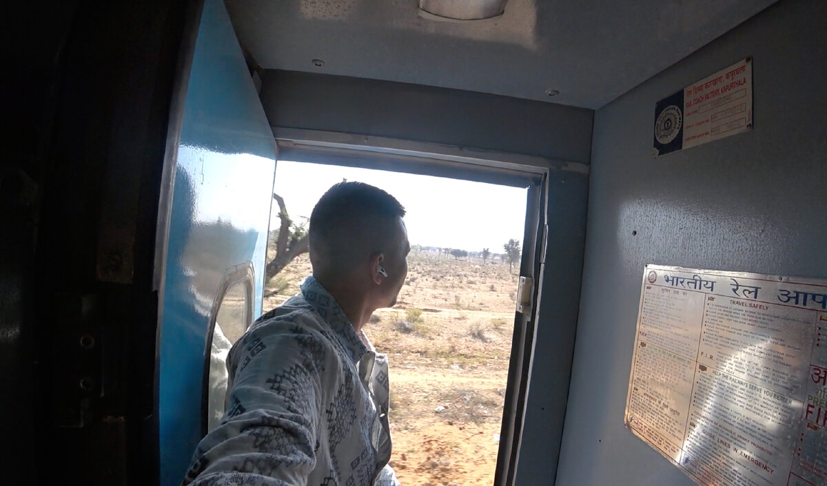 Из розового города Джайпур, на поезде, я вместе со своими попутчиками отправился в голубой город Джодхпур. Билет обошелся мне в поезд 2S класса в 470 рупий (1 рубль = 1 рупий). Дорога до Джодхпура заняла почти 6 часов, но для меня она не была утомительной. Всю дорогу я любовался индийскими пейзажами. Да, в индийский поездах не закрывают основные двери