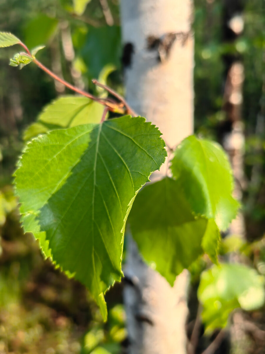 Добравшись наконец до леса, с радостью выбираюсь на сухую лесную тропу и захожу под тень нормальных деревьев. Леса не узнать: зимой здесь было очень светло, а тропа была утоптанная и широкая. Теперь же стоит хороший полумрак от покрывшихся листвой берёз и осин, а тропа стала совсем узенькой. В подлеске – обширные заросли молодой светло-зелёной черники, на ветках её уже завязались ягодки.